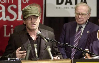 Bono, whose real name is Paul Hewson, said he consulted Buffett when he was planning the tour and welcomed his advice. "He told me not to appeal to the conscience of America but to the greatness of America," Bono said. The messages from celebrities accompanied a heart-rending tale of Agnes Nyamayarwo, a Ugandan woman who is living with HIV. AIDS has claimed the lives of her husband and son.