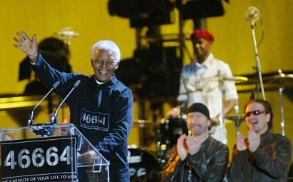 Beyonce Knowles and Bono were among global stars who performed at Nelson Mandela's South Africa gig to boost the fight against Aids.